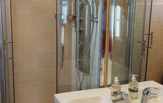Bathroom has a shower and a washing machine. There is a hair dryer too. Every guest gets a set of three towels (two bigger and a small one).