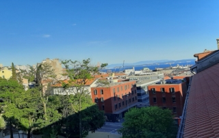 Apartment has a balcony that’s oriented towards building’s great inner courtyard. View from the balcony gives you the feel of city life in Rijeka. Bedroom and living room have views to the park and over the city roofs all the way to the port of Rijeka.